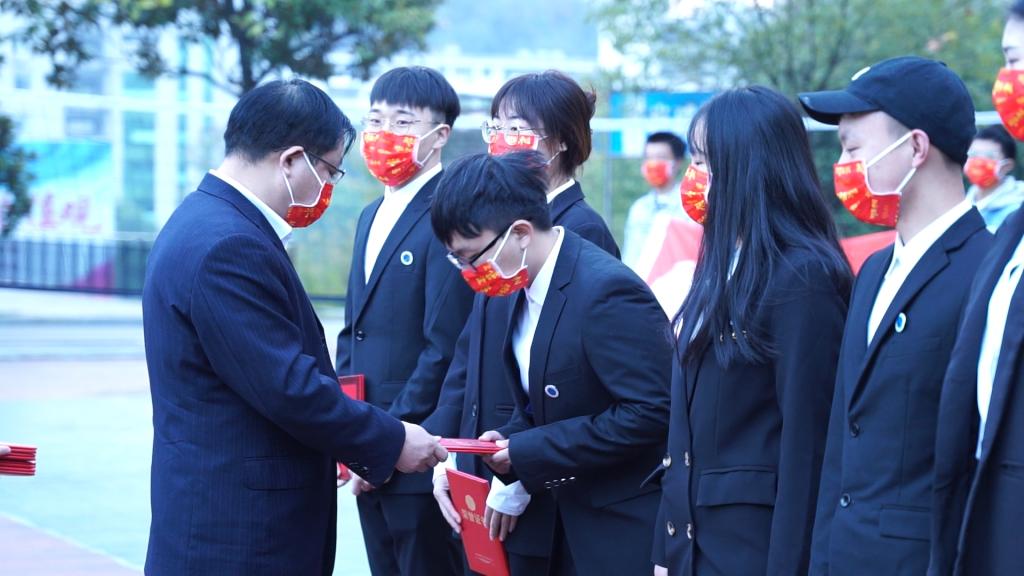 学院团总支书记、学工办主任李佳维宣读了2020-2021学年度获得先进班集体和先进个人的名单,副院长曹俊军为14位学院疫情防控工作学生优秀志愿者颁奖。学院再次对学生强调了疫情防控工作的纪律要求及消防安全工作。