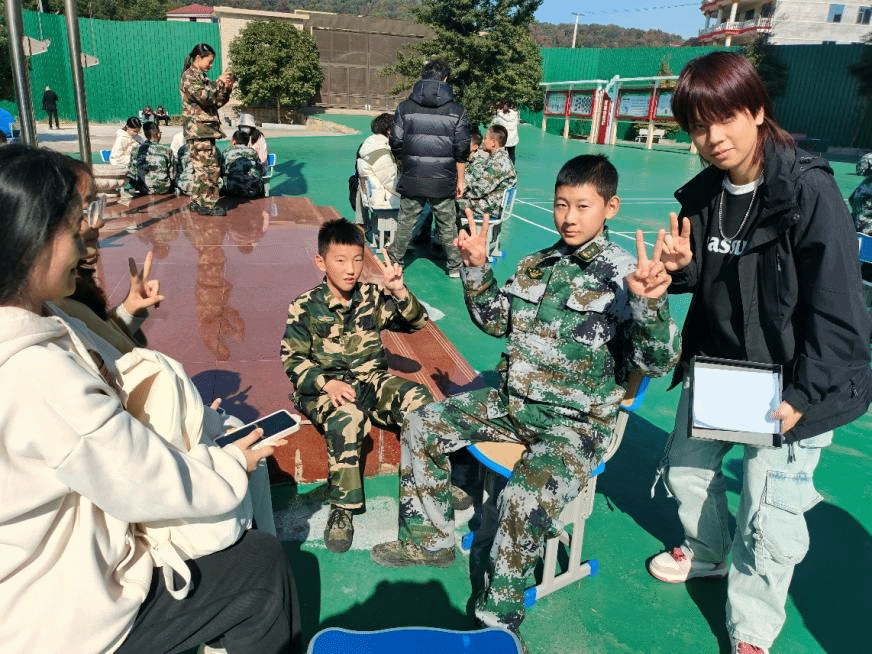 11月29日,院长蒋冰清教授一行来到娄底市忠志专门学校,看望在这里进行教育见习的应心专业B2303班的老师与同学们。在娄底忠志青少年学校,应心专业同学们参与了一场多维度的见习活动,深入探究心理辅导与青少年教育中的实践意义,为未来的心理学教育之路积累宝贵经验。在操场上,同学们首先参观了忠志学员们在这里进行的日常军体拳训练与晨练活动。学员整齐划一的动作、响亮的口号,彰显着力量与纪律。在训练与锻炼中,借由身体的律动,有效助力青少年情绪的稳定、专注力的提升以及自我控制力的增强。