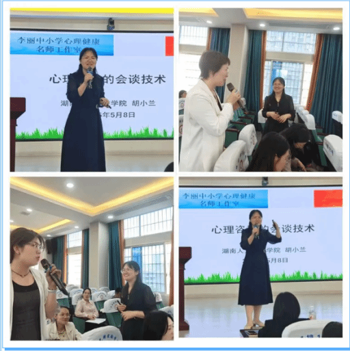 2025年5月8日,《心育润苗护新程 知“性”启智绽芳华——李丽中小学心理健康教育名师工作室第六次集中研修活动》在娄底市先锋学校开展,与会人员有娄底市教师进修学校教导主任谢志海,先锋学校校长陈智勇,工作室主持人、娄底三中李丽老师,工作室成员李建英老师、贺艳老师、工作室顾问邓如良老师等,ballbet贝博bb艾弗森教育学院应用心理学专业教师胡小兰博士等。活动由先锋学校雷杰老师主持。开展了心理健康教育课例展示、集体评课、心得分享等环节的活动。胡小兰博士应邀为大家带来了《心理咨询的会谈技术》,从听什么(倾听技 术),到问什么、怎么问(提问技术),再到说什么(表达技术),把 专业的理论知识用简单明了的语言阐述出来,老师们都收获满满,受益匪浅,进一步明确了心理咨询的流程及有效方法。