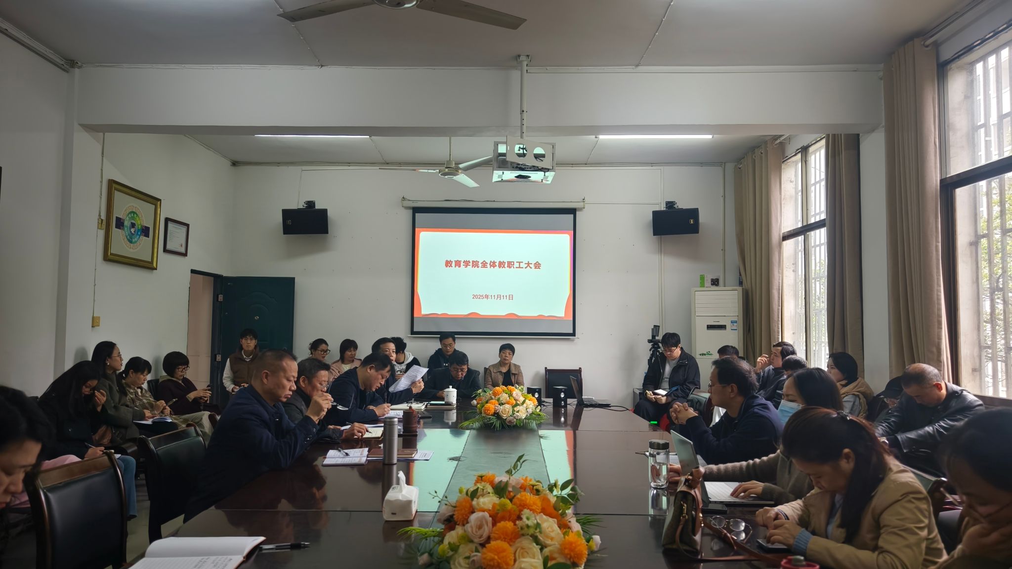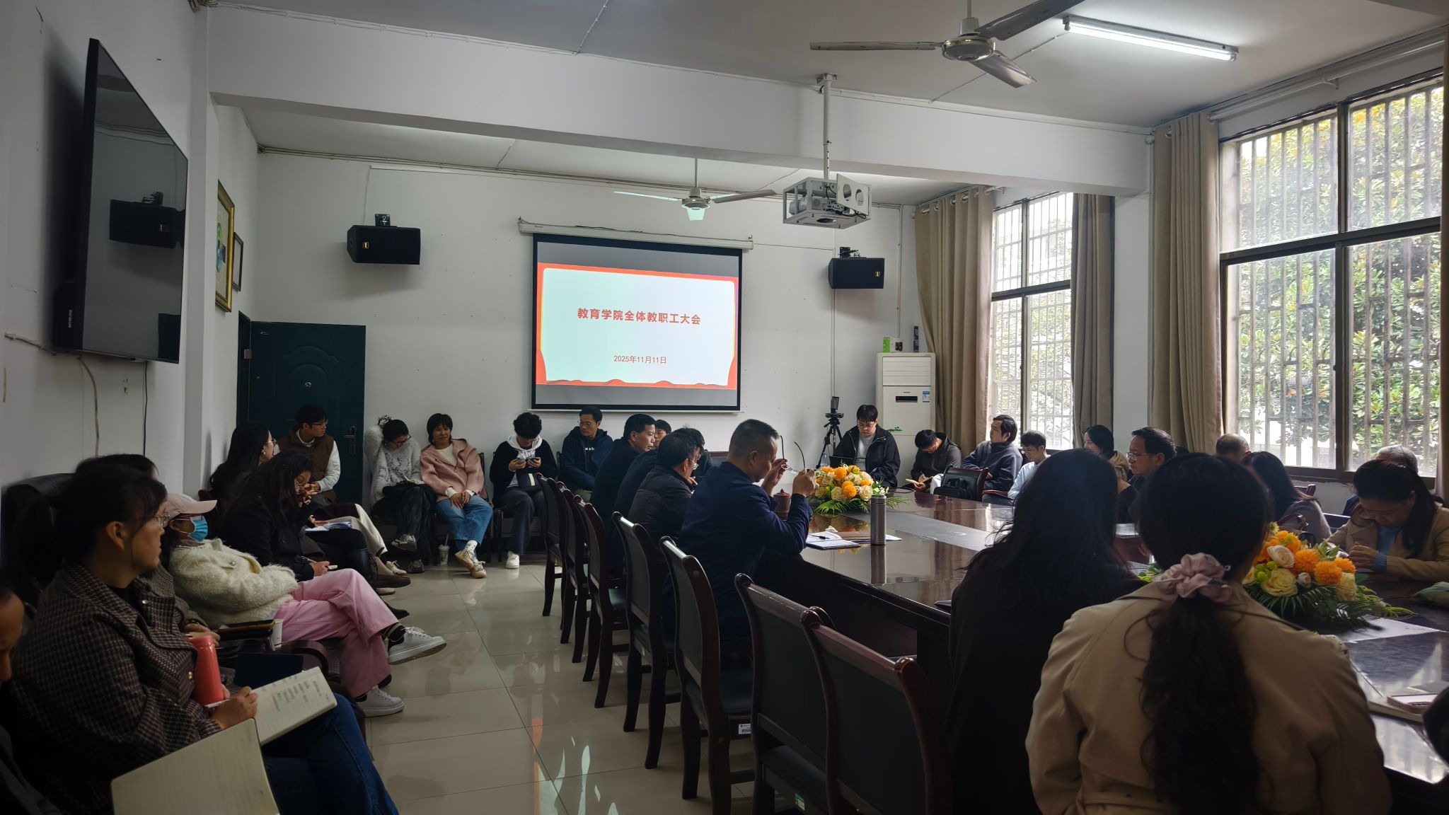 2025年11月11日下午,教育学院在甘澍楼304会议室召开全体教职工大会。