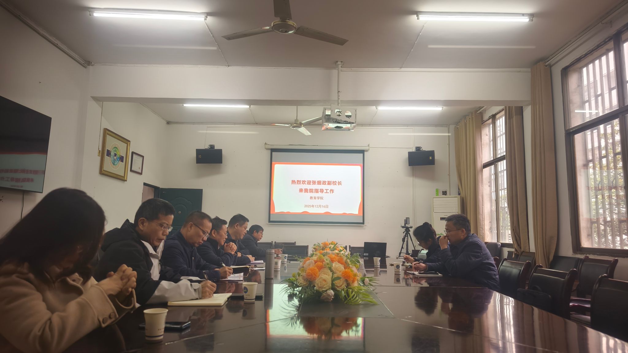 2025年12月16日,副校长张细政莅临教育学院开展学科专业调整协调调研会,教务处副处长白婧随同参加,教育学院有院党总支书记陈功平、院长蒋冰清、副院长曹俊军、副院长李国强,学前教育专业教研室主任赵艳红、历史学专业教研室主任王向文、教师教育教研室主任胡小兰等。