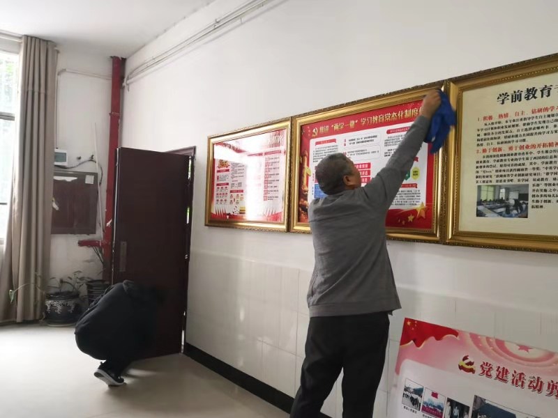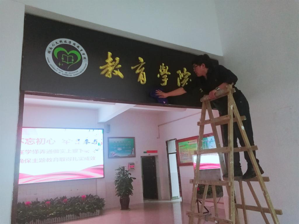 为持续推进“不忘初心 牢记使命”主题教育,丰富党员活动形式和载体,也为了更好迎接贝博本科教学工作审核评估预评估,10月10日和10月11日下午,我院组织师生党员在甘澍楼教学楼开展义务劳动。我院党总支周月朗书记进行了活动前的动员及具体安排。此次义务劳动的主要任务是清理教学楼公共区的死角卫生。党员们拿着工具将门窗上遗留的粉刷涂料轻轻刮去,用抹布擦去楼梯扶手、不锈钢窗户上、橱窗上的灰尘。
