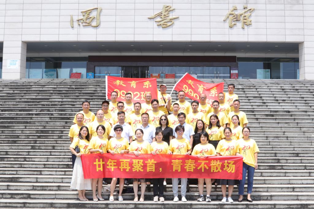 7月29日-30日,教育学院1999级校友毕业20周年回母校交流,为学校捐赠文化纪念石,并在图书馆一报告厅召开“二十年正青春,再聚首”同学座谈会。校长刘铁铭为文化纪念石题词“学而知道,教而成德”。校友办主任刘莉,教育学院党总支部书记邹坤、院长刘超良,原学院领导及班主任周月朗、吴智斌,校友代表40余人参加座谈。