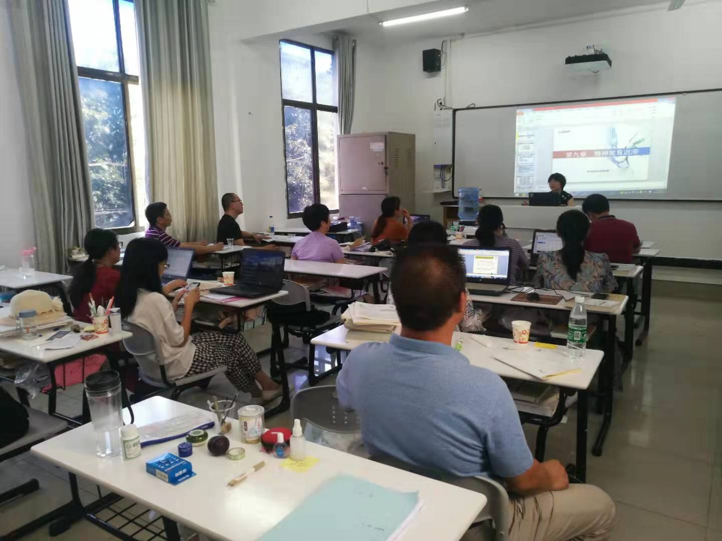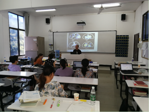 现场磨课分为两个环节:第一个环节是说课环节,老师们讲解了自己的设计思路,展示课程的要点;第二个环节是教师展示十五分钟的精彩片段。如李国强讲“心理学在工程领域的应用;杨红君老师讲“知觉的特性”;文小辉老师讲“心理旋转”;陈尚恒老师讲“情绪体验的脑成像研究”;苏小七老师讲“精神发育迟滞”;胡小兰老师讲实验心理学中的“思维研究”;王旭红老师讲“记忆机制”;龚高昌、龚跃华、陈杰、邹昭萍老师就教师教育课程“教育心理学”中的相关内容精心说课与讲课。
