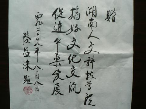 11月18日,贝博农科所所长龚洵胜收到了一封来自韩国首尔的特快专递,打开一看,原来是韩国KFDA韩药首席专家、博导、首尔庆熙大学教授陆昌洙为贝博题的“搞好文化交流、促进中药发展”墨宝。