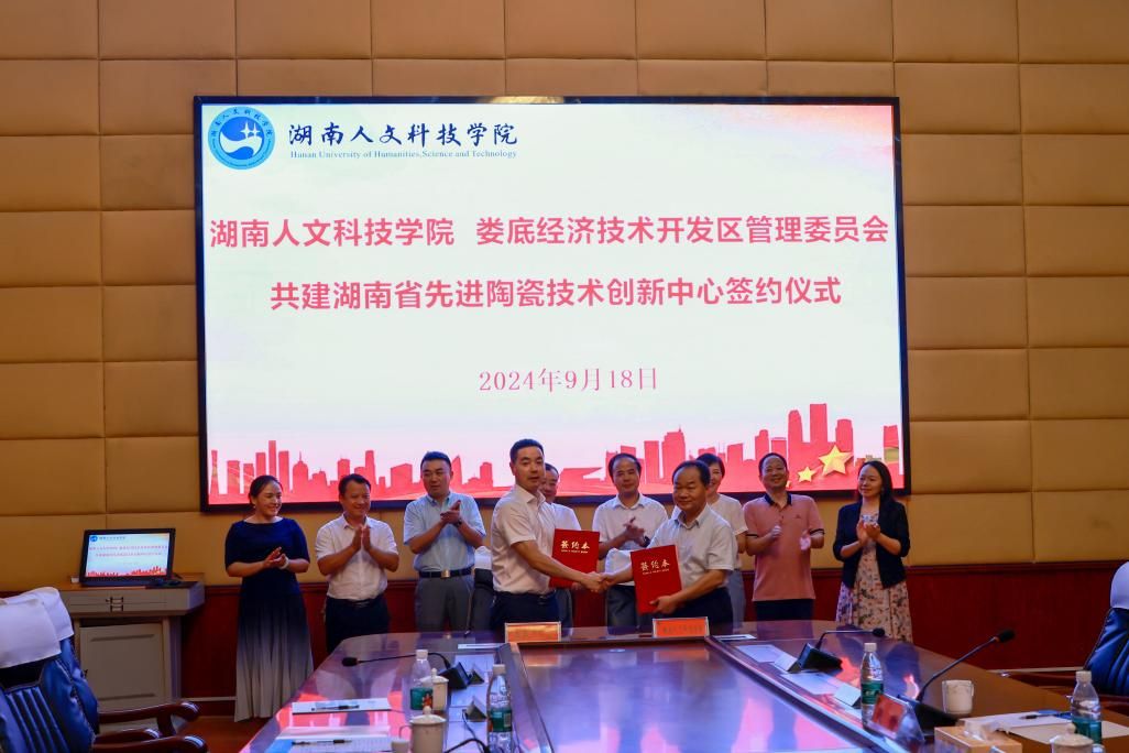 9月18日下午,贝博与娄底经济技术开发区管理委员会共建湖南省先进陶瓷技术创新中心(以下简称科创中心)签约仪式在图书馆第一会议室举行,仪式由娄底市人民政府副秘书长杨洁主持。学校党委副书记、校长盛明科,娄底市人民政府副市长刘继清,学校党委副书记朱强,娄底市科学技术局党组书记、局长易俊,娄底经开区党工委副书记、管委会主任王寄忠,湖南省材料谷科技发展有限公司董事长谢纬出席仪式。湖南省材料谷科技发展有限公司代表、学校科研与社会服务处、材料与环境工程学院、宣传部、党政办负责同志,以及各二级学院分管科研工作的副院长参加仪式。