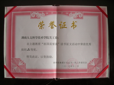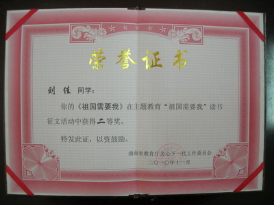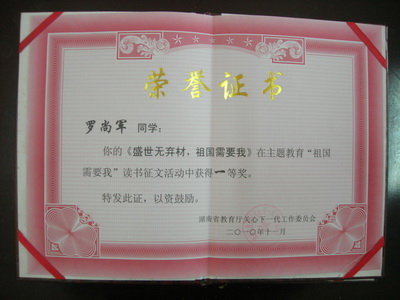 “祖国需要我”主题征文活动证书