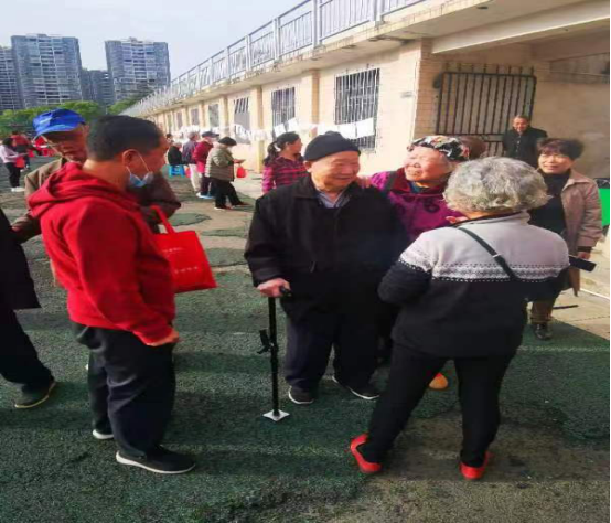 (90岁老人举着拐杖参加抢红包项目)