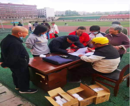 (运动员在签到处签到领取纪念品)