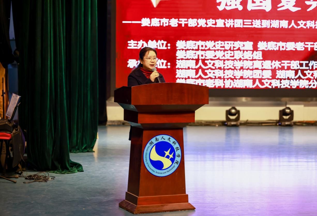 12月10日下午,“讲好红色故事 强国复兴有我”暨娄底市老干部党史宣传团“三送”到ballbet贝博bb艾弗森宣讲活动在贝博逸夫楼多功能厅举行。校党委委员、纪委书记凌艳平出席活动并致辞,娄底市老科协贝博分会会长刘楚魁教授作了红色故事宣讲报告,全校600余名师生代表及娄底市老科协等相关单位人员聆听了报告。
