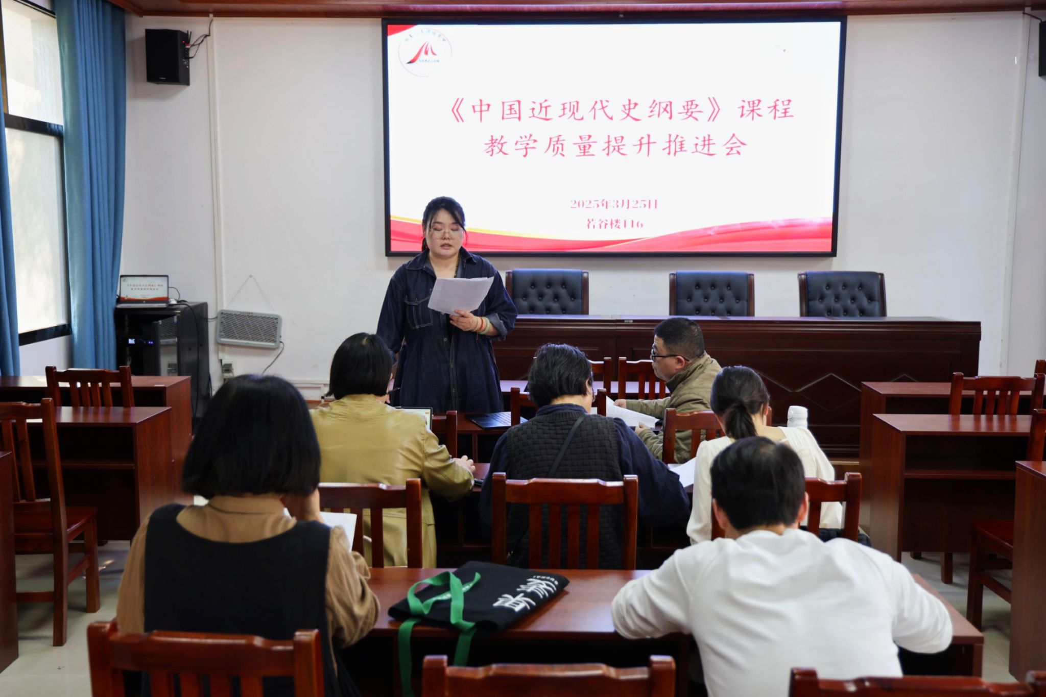 3月25日,马克思主义学院中国近现代史纲要教研室在若谷楼116召开课程教学质量提升推进会,会议由教研室主任陈琳主持,教研室及课程组全体教师参加。