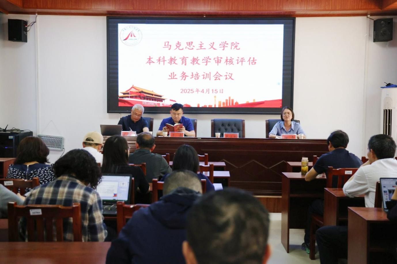 为确保本科教育教学审核评估工作高质量完成,4月15日,马克思主义学院若谷楼116教室召开本科教育教学审核评估业务培训会。学院领导班子、教研室主任及全体教师参加会议。会议围绕评估前夕的工作部署、业务培训及重点任务落实展开。