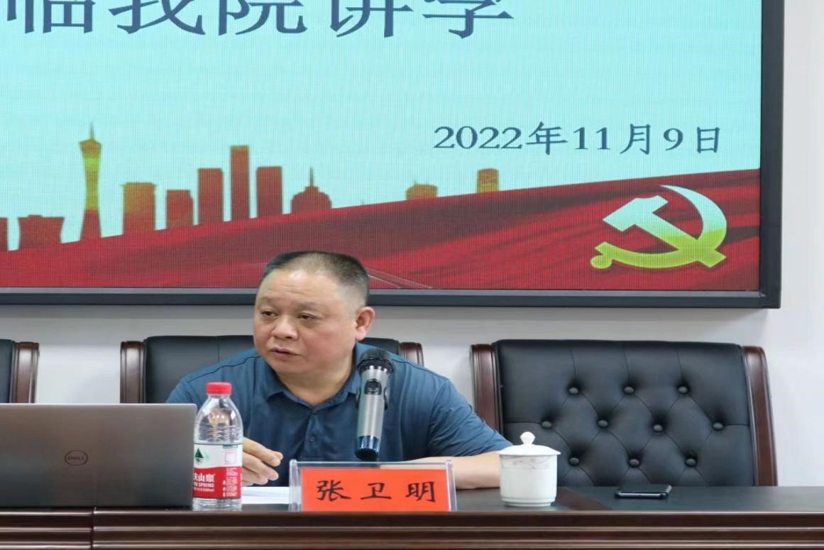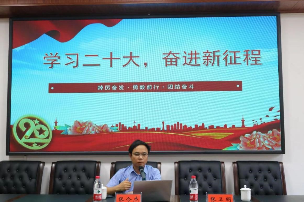 11月9日下午,湘潭大学博士生导师张今杰教授应邀于若谷楼多功能报告厅为我院作题为《学习二十大·奋进新征程》讲座。讲座由我院院长张卫明教授主持,我院部分教师及学生参加。