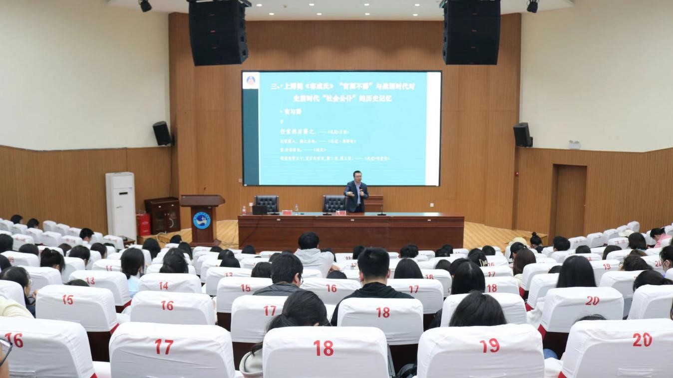 为营造浓厚的书香氛围,引导贝博学子养成良好的读书习惯,马克思主义学院于4月11日在匠成楼报告厅开展阅读月讲座活动。本次活动由马克思主义学院思想政治教育教研室主任谢科峰博士主持,安徽师范大学王少林博士受邀担任主讲人,湖南师范大学教授李健胜,湖南博物院研究员刘桂君参与点评,贝博部分学生参加。