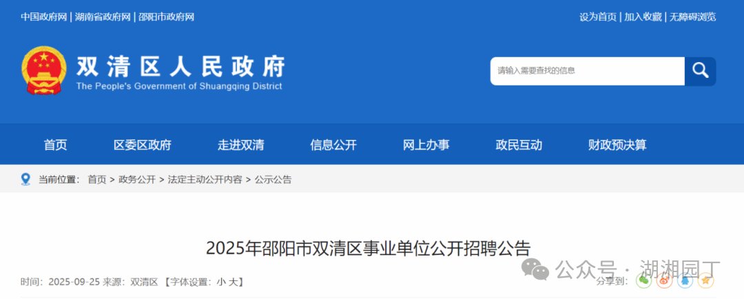 5.笔试成绩及入围面试名单在邵阳市双清区政府网(http://www.shuangqing.gov.cn)公布。