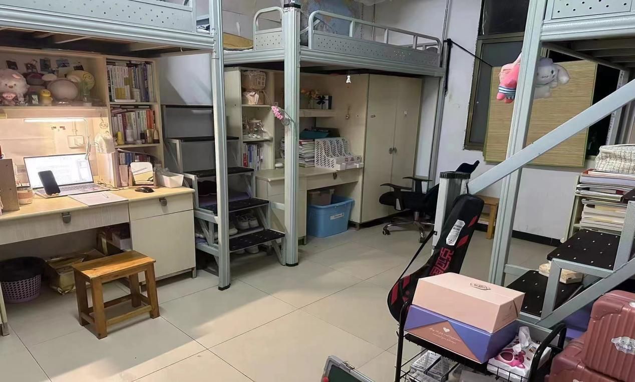 窗明几净,带你解锁“住宿密码”!学校宿舍内部布局合理,功能齐全。宿舍宽敞明亮,配备了舒适的床铺、书桌、椅子和衣柜等基本家具。宿舍楼内还设有公共休息区、自习室和洗衣房等设施,方便学生的日常生活和学习,让你在学校也能感受到家的舒适。