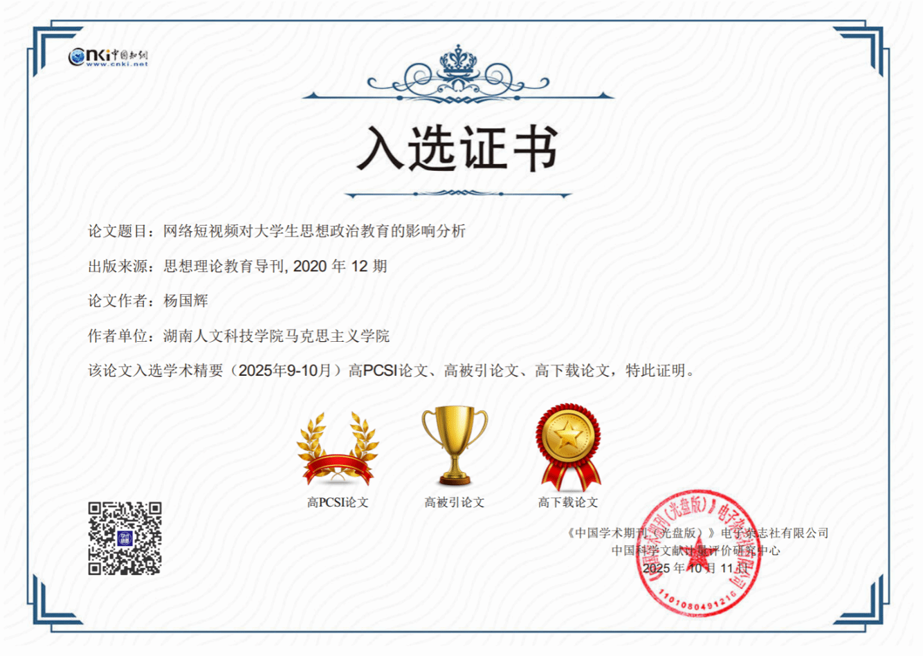 据悉,该论文同时入选中国知网(CNKI)《学术精要数据库》,成为高被引论文、高下载论文及高PCSI论文,位列马克思主义理论学术影响力的前1%。(供稿人:谢星芝 一审:邓景文 二审:成赛军 三审:于意)