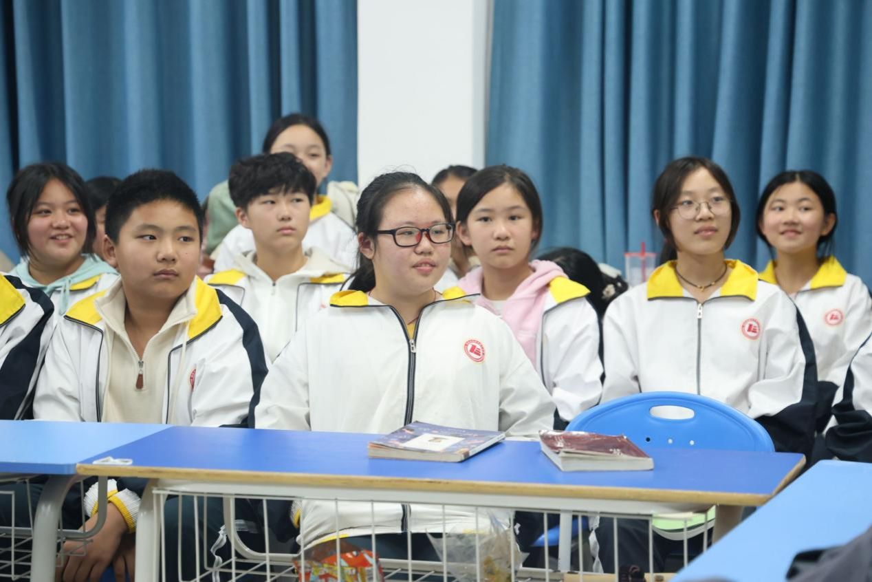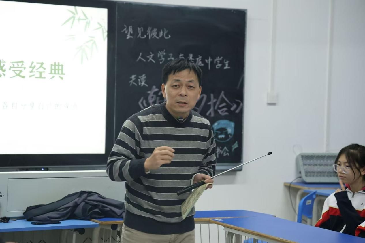 会上,谢科峰以鲁迅形象为切入点,深入剖析《朝花夕拾》中鲁迅的情感世界与思想变化,引导学生认识“寻得优秀榜样学习”的重要性。基于这一核心理念,座谈会依次开展多个环节:亲子共读《五猖会》选段,在重温经典魅力的同时搭建亲子心灵沟通桥梁,强化家庭情感联结;学生主动上台分享阅读感悟,通过不同视角碰撞激发创新思维,在交流思辨中提升批判思维与逻辑表达能力。此外,教师代表围绕“成长的真正内涵”展开解读,提出成长需实现“精神发育、人格独立与思维方式养成”的核心观点,鼓励学子要以经典为镜、对标榜样、审视自我,将阅读收获转化为推动自身成长的内在动力。