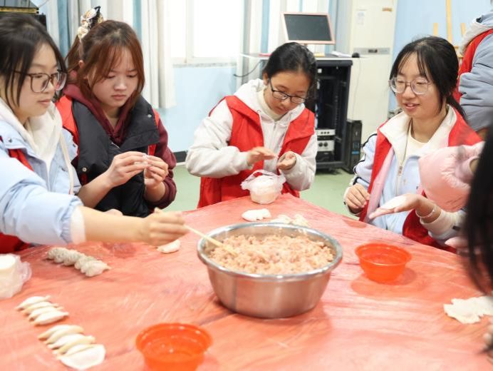 活动前期,青工部积极与福利院及校团委对接,进行志愿者招募工作。活动当天,志愿者们有条不紊地推进包饺子教学、食材调配及煮制等准备工作,以确保活动的顺利进行。孩子们亲手揉面、包馅,在志愿者引导下激发灵感,实践创意,将传统饺子包出充满童趣的新造型。饺子煮好后,大家围坐一堂,共同品尝劳动成果。志愿者向孩子们讲述冬至的传统习俗与文化内涵,让孩子们在互动中感受节日温暖与真切关怀。
