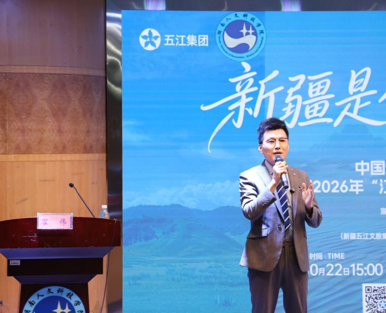 于意对“五江集团”返校宣讲表示热烈欢迎,他介绍了五江集团的基本情况,表达了校企双方携手拓展引才渠道、助力毕业生高质量就业的美好期望。宣讲会上,翟伟结合文旅融合趋势与实体产业布局,展现了新疆独特的魅力与企业活力,并针对2026年招聘的岗位方向、培养体系及薪酬福利等进行宣讲。此次活动为毕业生搭建了校企交流平台,是借校友返湘平台、通过校企合作促进毕业生高质量就业的又一次尝试。
