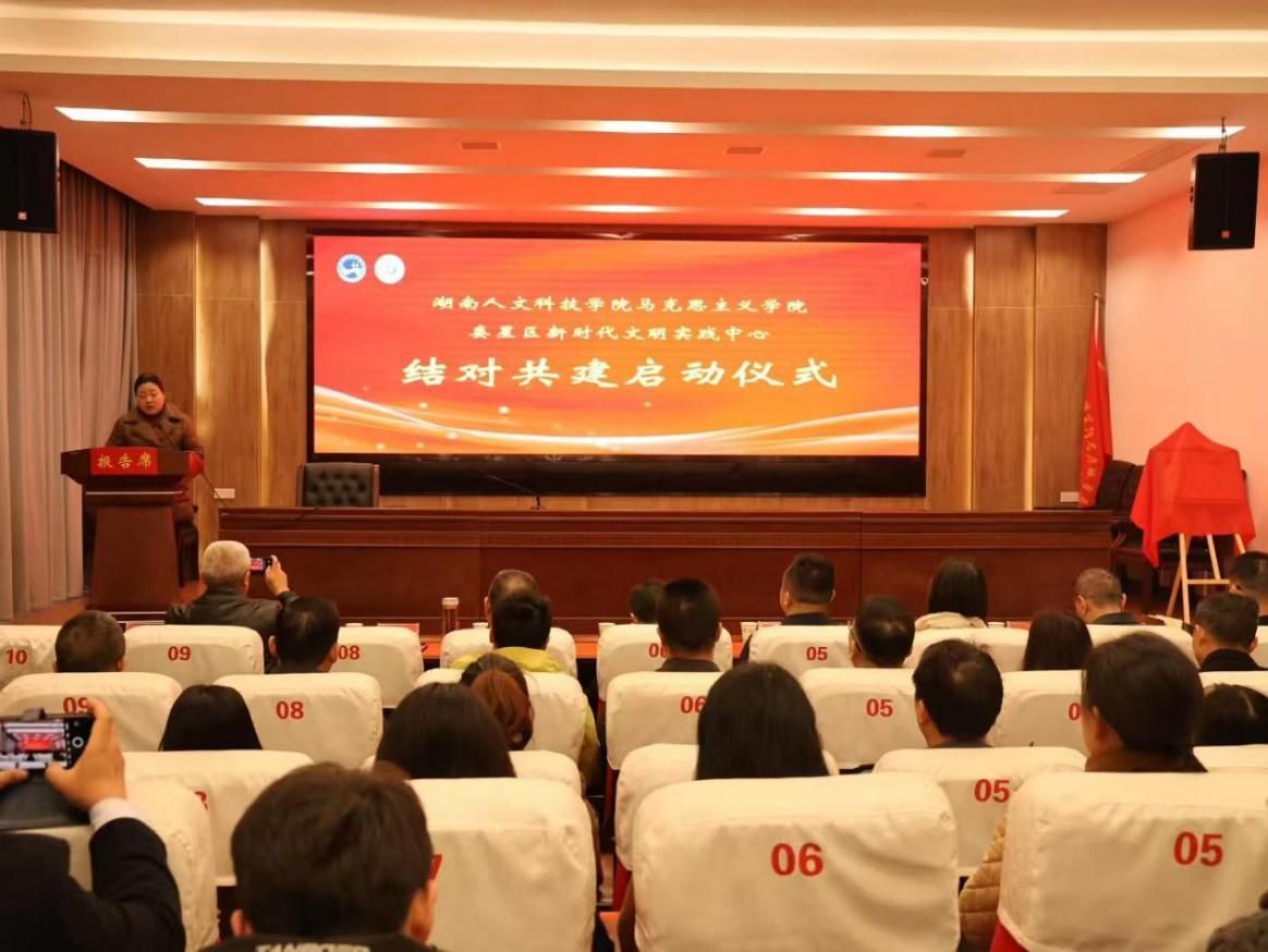 12月23日,ballbet贝博bb艾弗森马克思主义学院与娄星区新时代文明实践中心结对共建启动仪式在娄星区融媒体中心举行。ballbet贝博bb艾弗森党委副书记朱强、马克思主义学院党总支书记张卫明、院长于意及相关教师,以及娄星区委常委、宣传部长曾海军及新时代文明实践工作负责人出席,马克思主义学院部分学生参加。