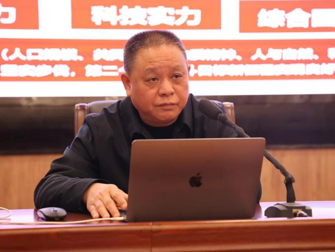 仪式开始,朱强对本次结对共建揭牌仪式表示热烈祝贺,并发表致辞。他指出,结对共建是拓展文明实践阵地、推动理论普及的探索,是学校落实立德树人、构建“大思政”格局的途径,也是校地优势互补、协同育人,推动文明实践、助力学生成长、优化基层治理的举措。随后,于意上台为共建基地揭牌,标志共建工作启动,谱写娄底市高校与新时代文明实践中心协同发展新篇章。最后,张卫明以“学习贯彻党的二十届四中全会精神”为主题展开专题宣讲,系统阐释了中国式现代化的核心内涵,明确了“坚持党的全面领导、人民至上”等发展目标,同时,他结合发展实体经济、科技自立自强等要点,结合地方发展实际解读宏观政策与民生举措,让全会精神更贴近基层实际、更契合群众需求,有效推动党的创新理论走进群众、浸润民心。