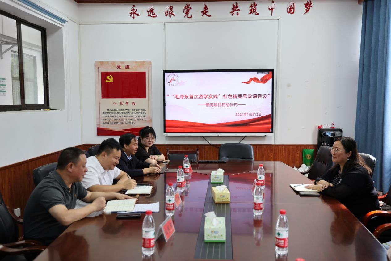 10月12日,党总支书记张卫明、院长于意及部分教研室主任与湖南省爱乐行教育营地负责人陈莉一行在若谷楼206举行“毛泽东首次游学实践”红色精品思政课建设横向项目启动仪式,张卫明为此次合作做出详细部署,一是要从实际出发,在实地考察中发现红色文化的力量;二是要充分利用自媒体工具和创新思维,上好一堂高质量的红色精品思政课;三是要巧用新形式,将红色元素以“润物细无声”的方式融入思政课程中,能寓价值观引导于知识传授和能力培养之中,促进课堂内容“深化”“内化”“转化”,以充分发挥思政育人作用。陈莉表示,此次合作对于双方来说意义重大,“毛泽东首次游学实践”红色精品思政课建设项目的实施发展将为双方的教育体系注入新的活力。