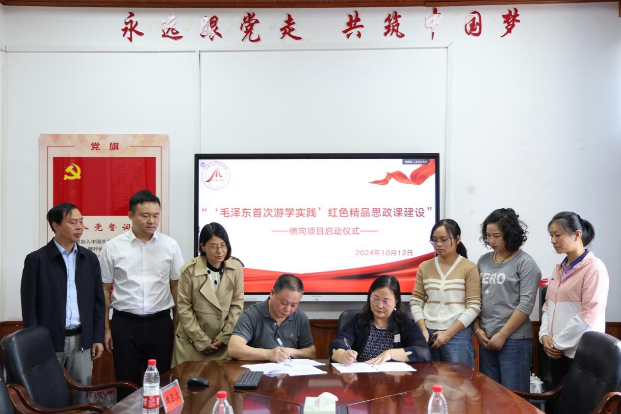 随后,双方正式签署“毛泽东首次游学实践”红色精品思政课建设项目合作协议。据合作协议,双方将围绕组织实践研学、开发优质教学资源、优化“大思政课”师资、开展学术研究等目标任务,搭建交流平台,共同致力于推动“毛泽东首次游学实践”红色精品思政课建设项目高质量发展、推动思政“小课堂”与社会“大课堂”相结合。
