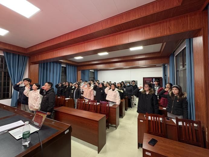 12月9日,马克思主义学院学生党支部在若谷楼116会议室组织开展了“重温入党誓词”主题党日活动。此次活动由学生党支部书记张得才主持,全体学生党员及部分入党积极分子参加。