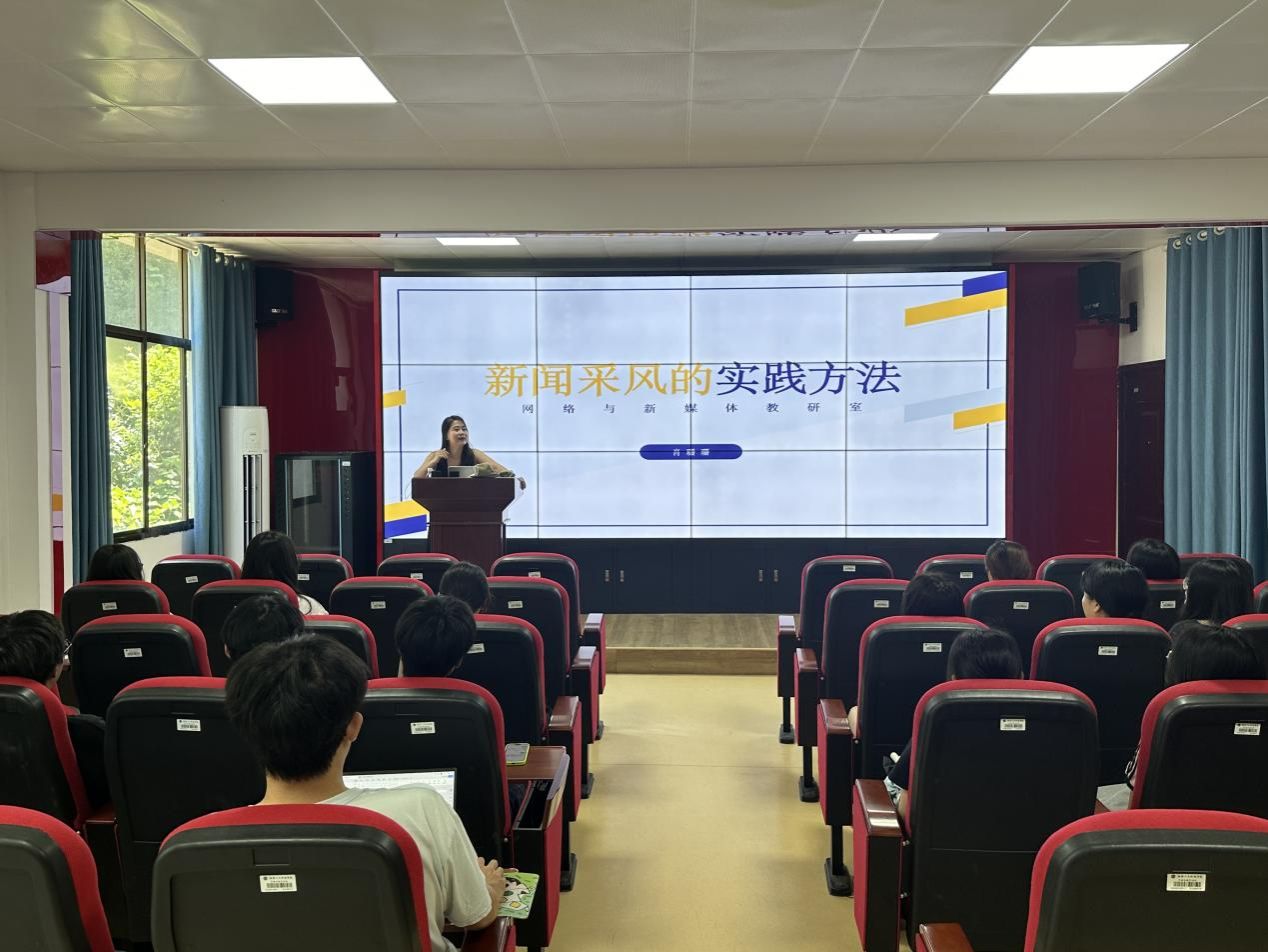 培训在文学院网络与新媒体教研室主任肖珊珊老师带来的“新闻写作采风的实践方法”中展开,她以《光明日报》中对“溜索女孩”的报道以及摄影爱好者“向哥”的亲身经历为切入点,深入剖析新闻采风的影响力和重要性。就不同新闻稿体裁和特色写作方式,肖珊珊展开细致解说,并就调研团成员提出的问题进行解答。