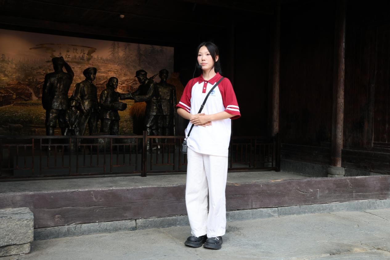 在红二军团长征司令部旧址内,调研团成员们化身讲解员,带领线上、线下的观众开启了一场穿越时空的红色之旅。从序言厅到历史展厅,成员们沿着历史的足迹,逐一诉说红二军团的峥嵘岁月。调研团成员站在青石板上,讲述1935年贺龙元帅率领红二军团进驻此地的历史背景,从国民党对“围剿”的困境做出战略转移的决策,到“上团村”地名的由来变迁,再到红军与百姓的鱼水情深,这些生动的历史细节把观众带入那个烽火的年代。