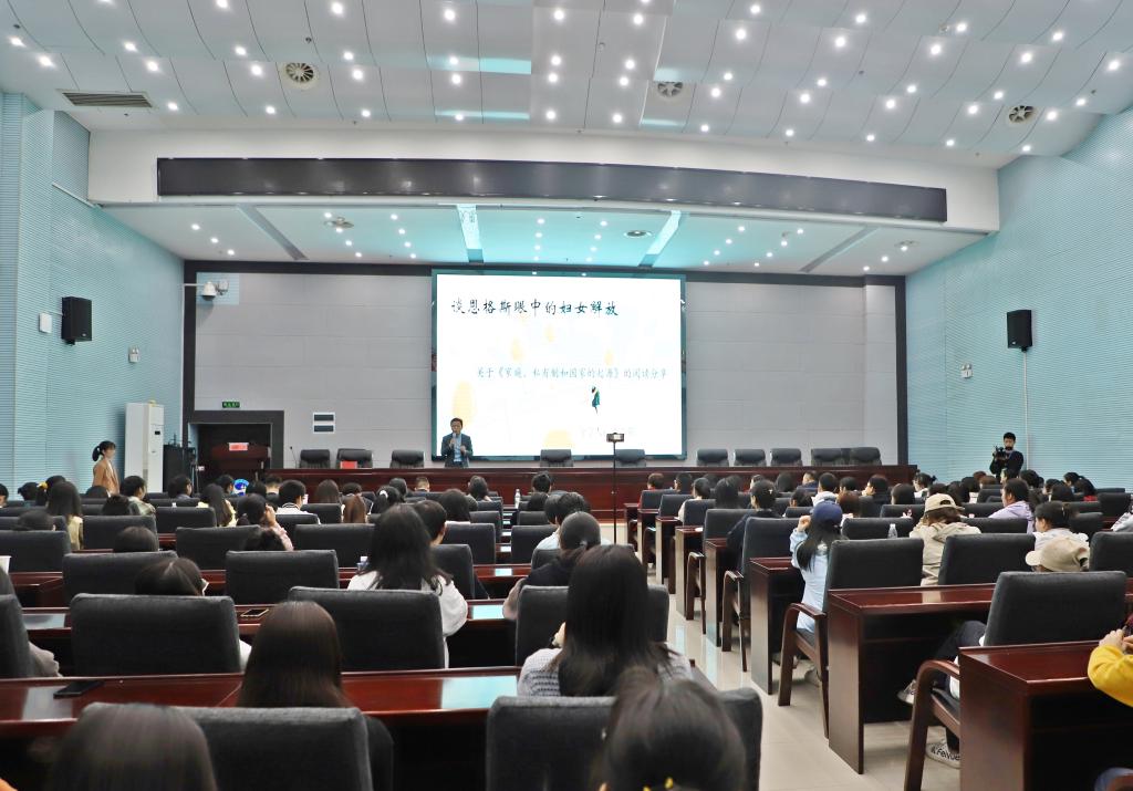 “这一代男子一生中将永远不会用金钱或其他社会权力手段去买得妇女的献身;而这一代妇女除了真正的爱情以外,也永远不会再出于其他某种考虑而委身与男子,或者由于担心经济后果而拒绝委身于她所爱的男子。这段话即使放在现代,我认为也具有时代的光芒。”廖添花从恩格斯《家庭、私有制和国家的起源》一书切入,介绍恩格斯关于妇女解放的相关理论论述,并以方洋洋事件、“嫦五”发射背后的优秀女性、疫情期间奋战在一线的女性医护人员梁钰为例,并结合《82年生的金智英》和《我的姐姐》两部有关女性的影视作品,阐述了“妇女解放,从来不是对权利的独占,一种示威,而是强调男女平等”的核心观点。