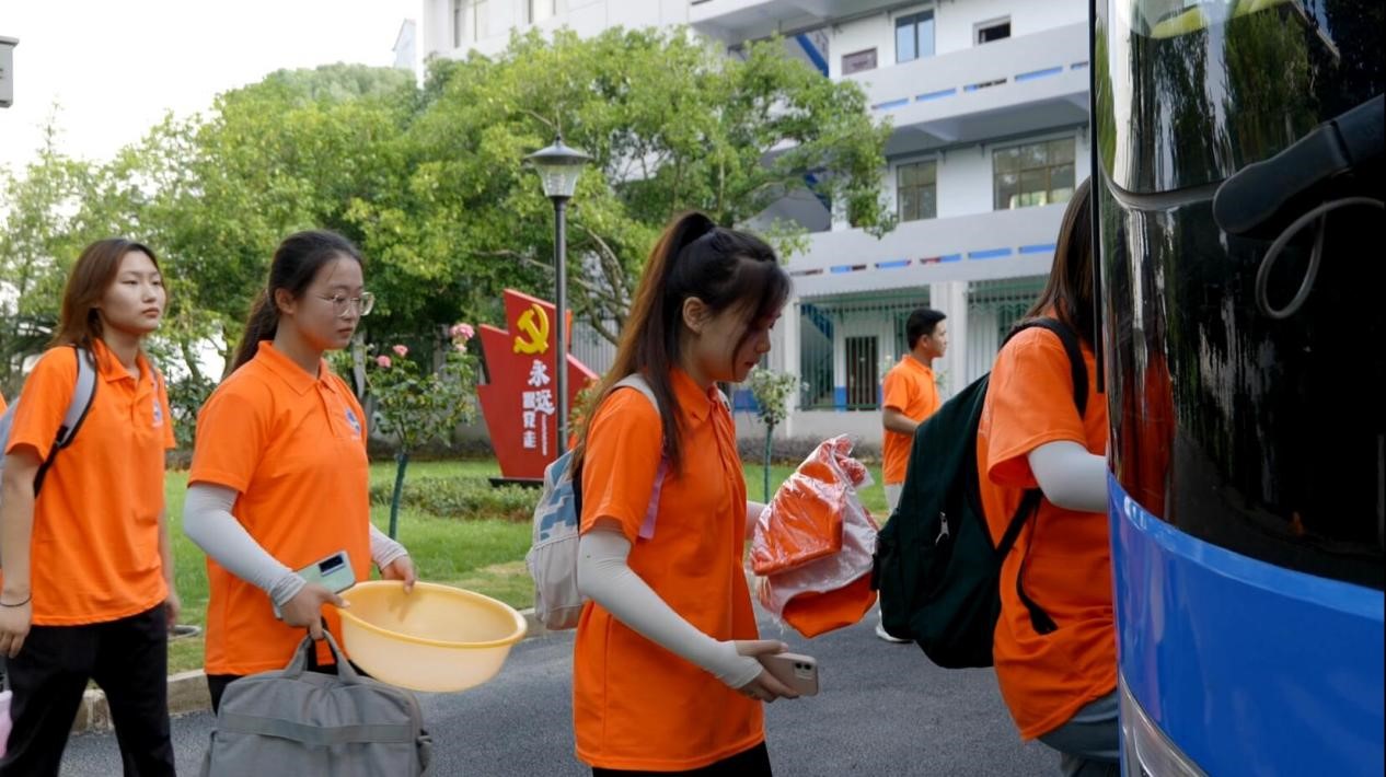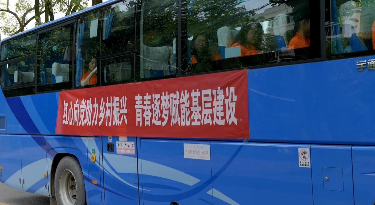 图为“青春向党红色筑梦”调研团乘坐的大巴准备出发