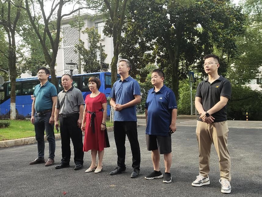 图为前来欢送的领导与“青春向党红色筑梦”调研团成员在若谷楼前出征前合影