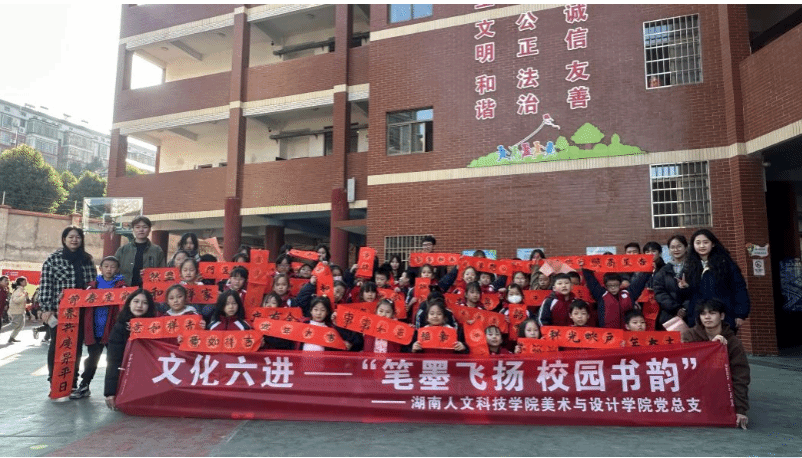 为深入学习贯彻习近平新时代中国特色社会主义思想,积极培育和践行社会主义核心价值观,12月16日美术与设计学院党总支组织学生党支部党员前往长井小学开展“笔墨飞扬,校园书韵”特色主题党日活动。此次活动旨在通过向小学生们介绍春联的历史、文化和书写技巧,激发他们的学习兴趣,传承和弘扬中华优秀传统文化。