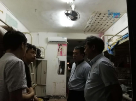 6月7日晚,学院党总支书记谢光绎、副书记易俊率辅导员和毕业班班主任深入毕业生寝室,了解毕业生离校情况,排查寝室安全隐患。
