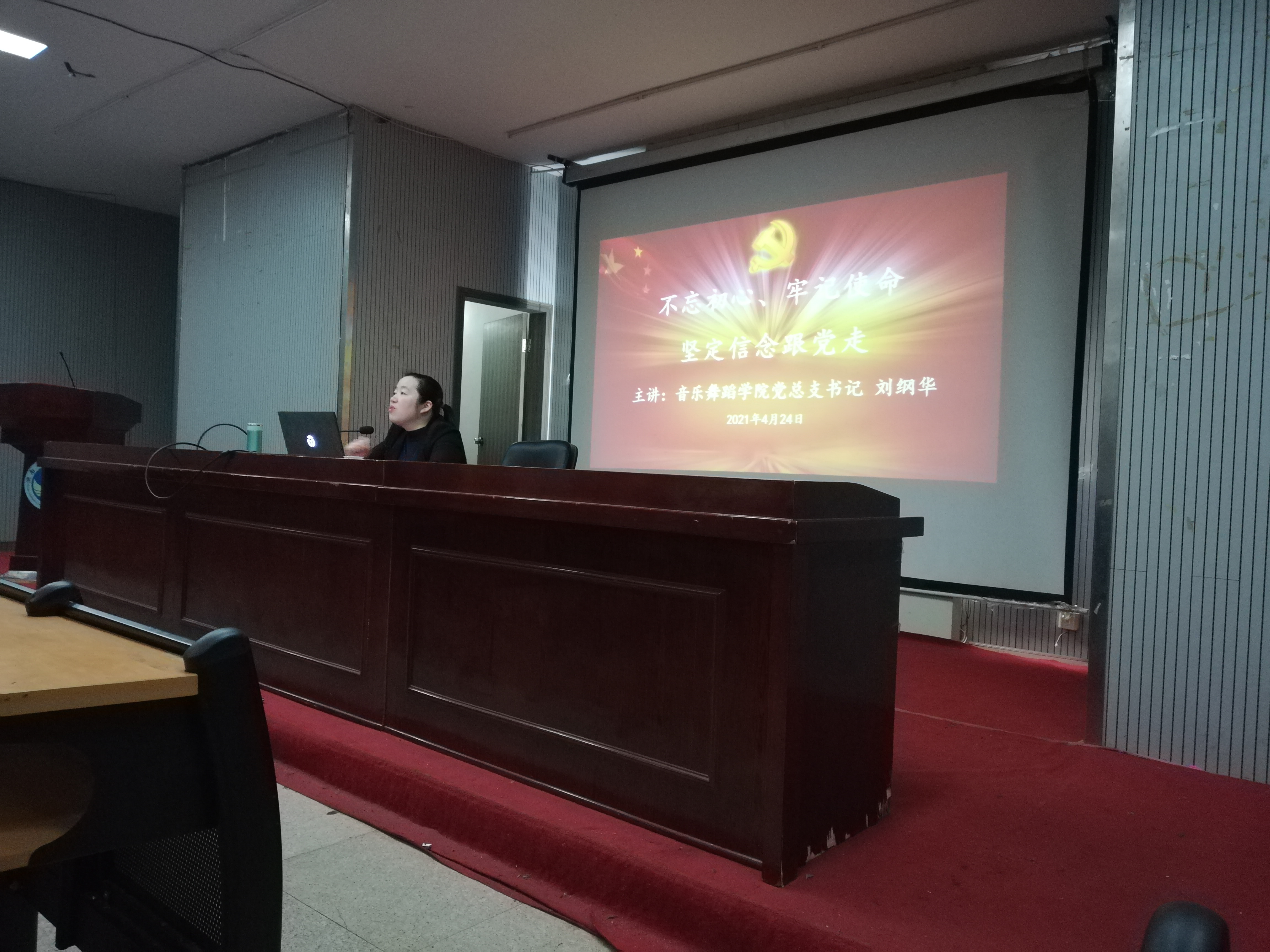 在培训期间,美术与设计学院和音乐舞蹈学院主要领导亲自给学员上课。谢光绎作党员《理想信念教育》专题讲座。他强调,“理想信念之所以重要,在于它是共产党人的灵魂和特质,是共产党人经受过任何考验的精神支柱。是否拥有马克思主义的信仰和社会主义、共产主义的信念,是区别一个人是否从思想上入党的最重要的标志,是判断一个共产党人思想上是否纯洁的首要标准”。音乐与舞蹈学院党总支书记刘纲华为入党积极分子作了《党的指导思想、性质、宗旨、路线和纲领》和《党的组织制度和党纪党风》的授课。美术与设计学院副院长陆序彦作了《习近平新时代中国特色社会主义思想》专题讲座。美术与设计学院党总支副书记易俊作了《党员的权利和义务》授课。