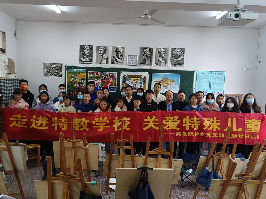 为进一步推进党史学习教育,落实好“学党史,悟思想,办实事,开新局”,增强学生党员社会服务和担当意识,关爱我市特殊儿童,1116日下午,美术与设计学院学生党支部组织党员走进娄底市特殊教育学校开展送教主题党日活动。活动由学院党总支副书记成伟带队,学生党支部书记及优秀学生党员代表参加。