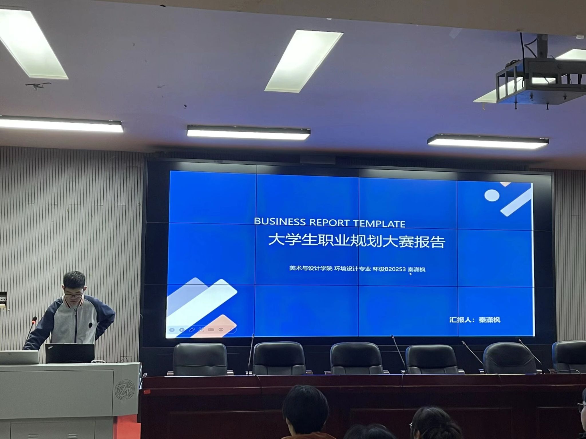 比赛现场氛围热烈而庄重,各参赛选手依次登台,围绕职业认知、自我剖析、规划路径、实施策略等核心内容展开演讲。尽管演讲时间有限,选手们仍凭借扎实的内容准备与流畅的表达,将个人发展与专业特色紧密结合,展现出扎实的专业素养与清晰的逻辑框架。其中,一位选手以“蜗居型设计——绿色科技”为核心发展方向,规划从基础设计软件实操起步,逐步钻研小户型智能生态改造技术,积累垂直绿化应用、低碳科技建材搭配等实践经验,稳步实现个人目标;另有选手锚定乡村振兴发展机遇,以“筑梦乡土——公共环境”为创业核心方向,计划挖掘地方乡土资源,深耕乡村共享空间、生态步道等公共环境设计,打造兼具本土特色与实用价值的设计项目,充分展现了对职业发展的前瞻性思考与务实规划能力。