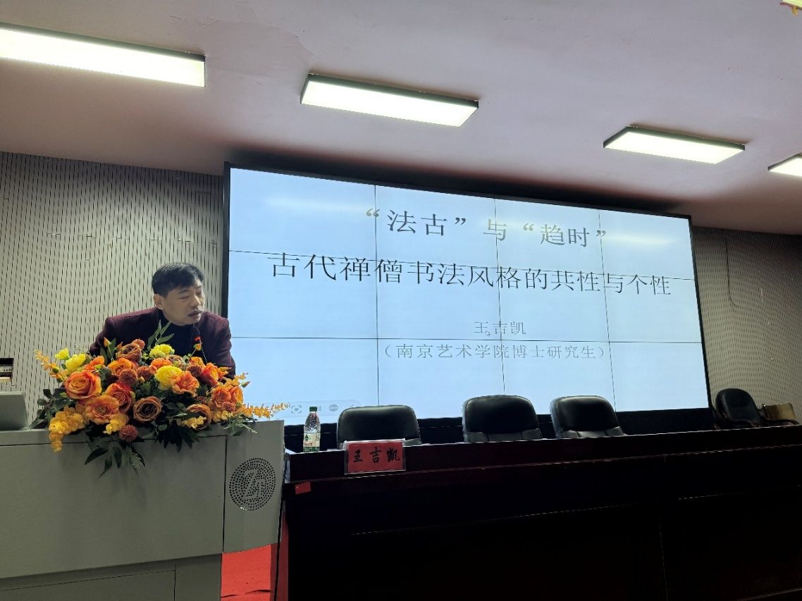 2024年12月10日,ballbet贝博bb艾弗森美术与设计学院于逸美楼一楼报告厅举行了“法古与趋势”主题讲座。特邀南京艺术学院美术学院博士研究生王吉凯主讲,李国清老师主持。ballbet贝博bb艾弗森美术与设计学院在校书法生全部到场。
