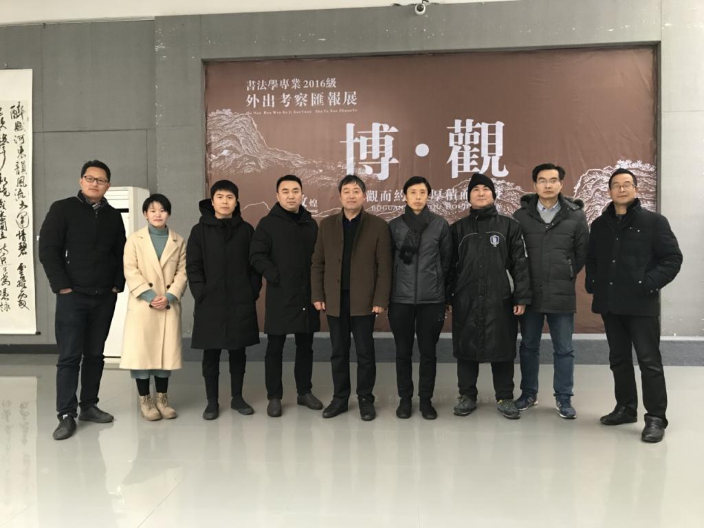 美设学院党政主要领导谢光绎、陆序彦、易俊及书法专业师生陪同或自行参观展览。(书法学教研室供稿)
