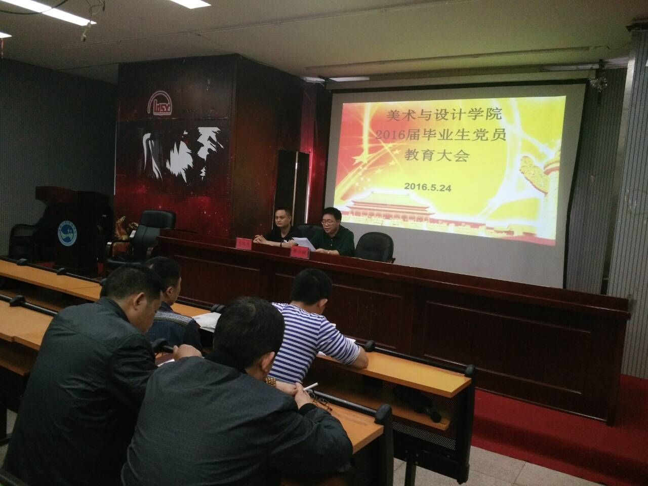 2016524日我院在逸夫楼报告厅召开了全体毕业生党员教育大会。美术与设计学院党总支李小林书记、王东光副书记、党总支委员、各支部书记以及2016届全体毕业生党员参加了本次会议,会议由党总支副书记王东光主持。