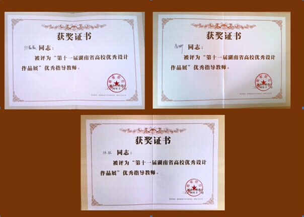 近日,由湖南省教育厅主办、湖南工业大学承办的“第十一届湖南省高校优秀设计作品展” 在湖南工业大学圆满落幕。我系送展的作品再创佳绩,共获得一等奖2项,二等奖1项,优秀奖9项,其中付薇薇、高娜、陈竑三名老师获得最佳指导老师奖,贝博(具体工作由美术系组织)荣获“优秀组织奖”。