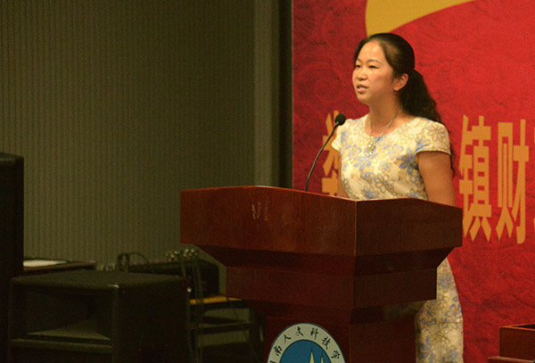 2014级辅导员肖宵老师作为辅导员代表、梁琼老师作为班主任代表先后登台发言,她们从适应大学生活、大学规划、品性人格塑造、社会责任培养、综合素质提升等几个方面为2014级新生作了精彩发言。2014级新生刘同学做了新生代表发言,表达了作为新生对未来4年生活的美好期盼与向往。