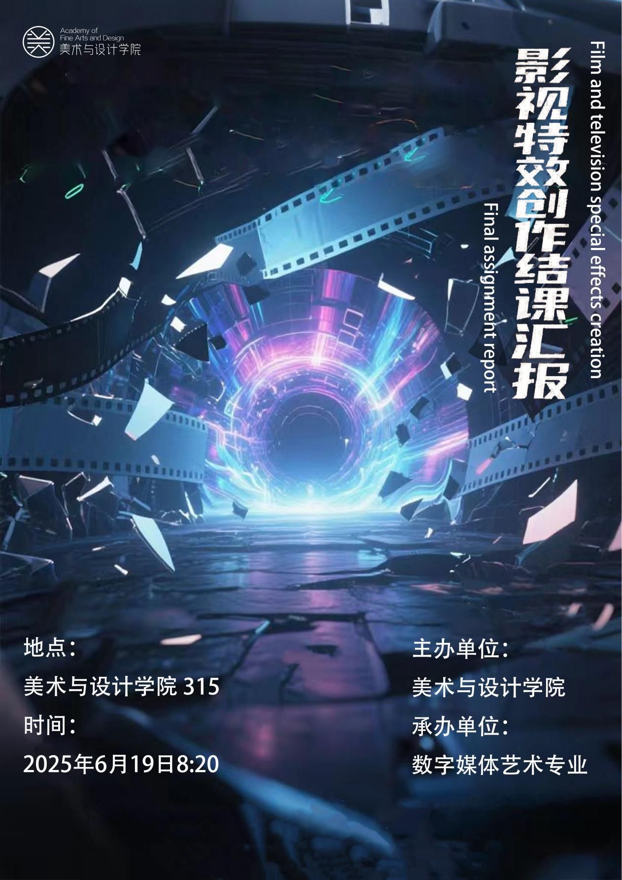 作品整体体现出较高的艺术表现力与技术完成度,充分展示了学生们在特效技术掌握、团队协作及创意表达等方面的综合能力。通过本课程的系统学习与全流程实践,学生不仅夯实了影视特效相关的核心技能,也在项目合作中发现并完善了自身短板,为即将到来的毕业设计创作积累了宝贵经验。课程在理论与实践的深度融合中,切实提升了学生的创新思维与技术应用能力,为其今后在视效设计领域的发展打下坚实基础。