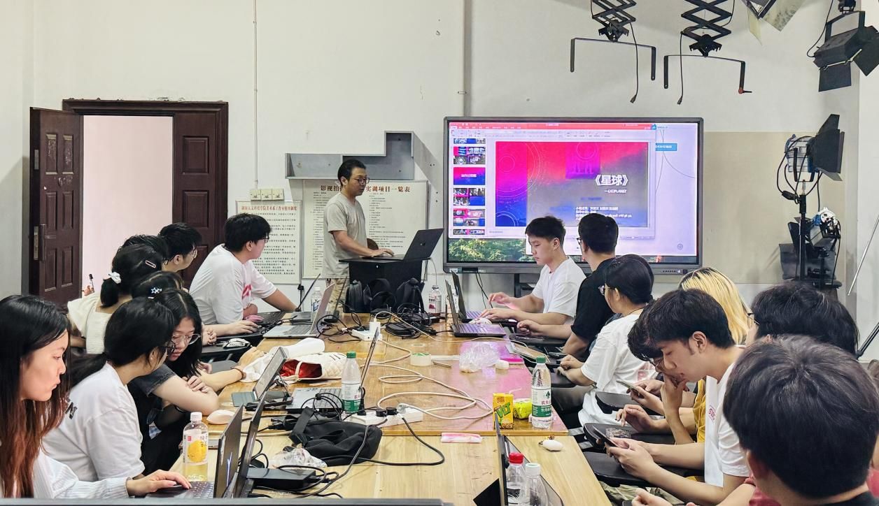 本次展览共展出8组学生团队的结课作品,题材丰富、形式多样,涵盖三维传统动画创作、环境保护主题短片等方向。展演过程中,各组同学依次上台讲述了各自的创作构想与实现路径,详细介绍了团队的分工协作与技术突破,充分展现出学生在项目实践中的综合表达能力。