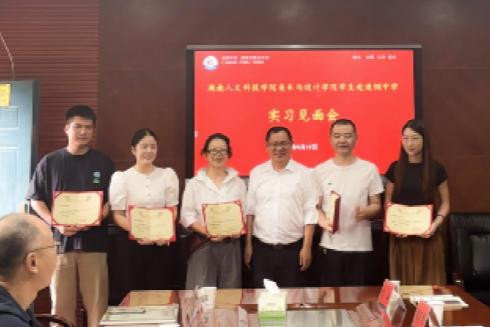 9月19日,娄底市第五中学为美术学专业2022级实习小队召开实习生见面会。娄底市第五中学工会主席、初中部分管领导蔡峻,副校长、高中部分管领导谢红卫,高中教务科科长唐世敏,初中教务科科长谢伟民,教研科科长方强,艺术教研组副组长姚佳,实习指导老师聂庆红、杨山梅、赵曦、曾雪宜,ballbet贝博bb艾弗森教务处实践科科长刘槐德,实习带队教师彭波以及实习生共同出席。