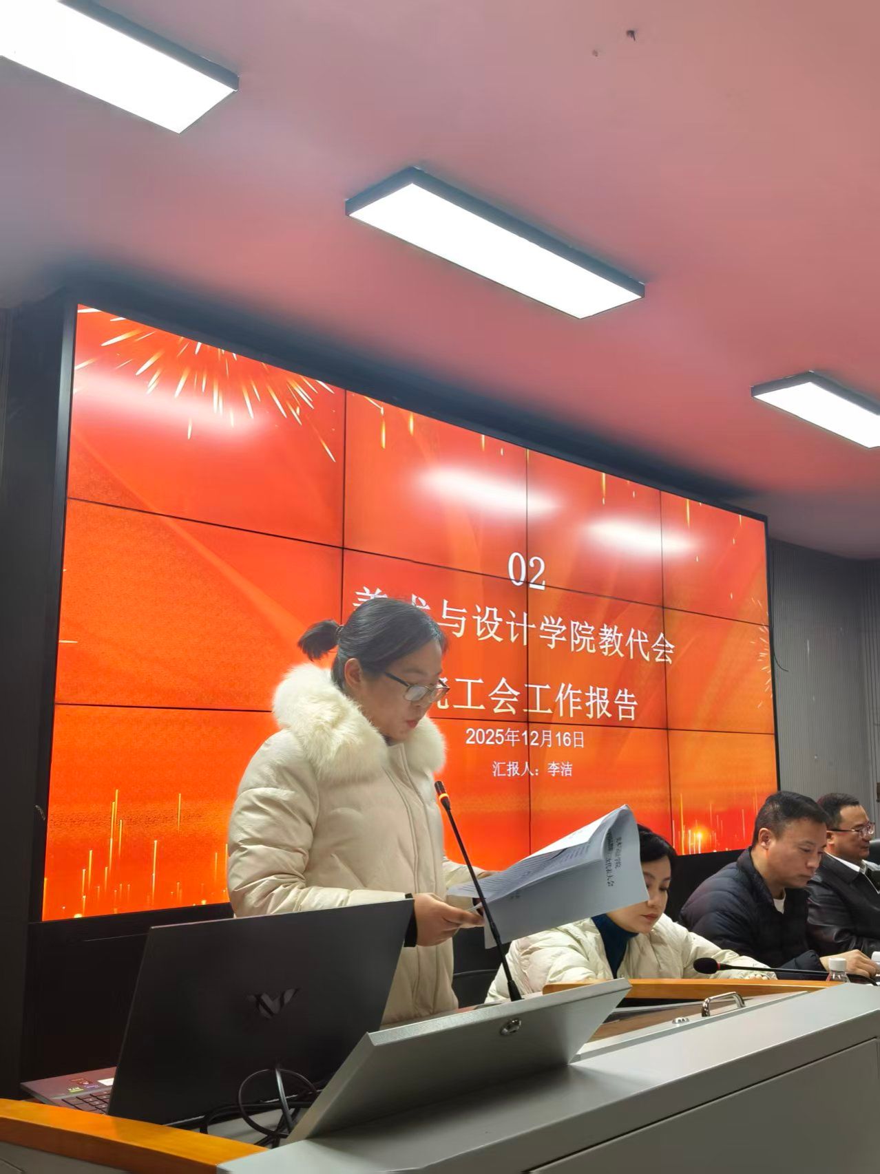 下午4时,大会再次集中,审议并通过了院行政工作报告、院工会工作报告及《美术与设计学院绩效工资二次分配办法(初稿)》等决议。最后,党总支书记阳立新致闭幕词,对大会的顺利召开表示祝贺,强调学院将认真吸纳代表建议,持续推进各项工作提质增效,此次教代会圆满落幕。