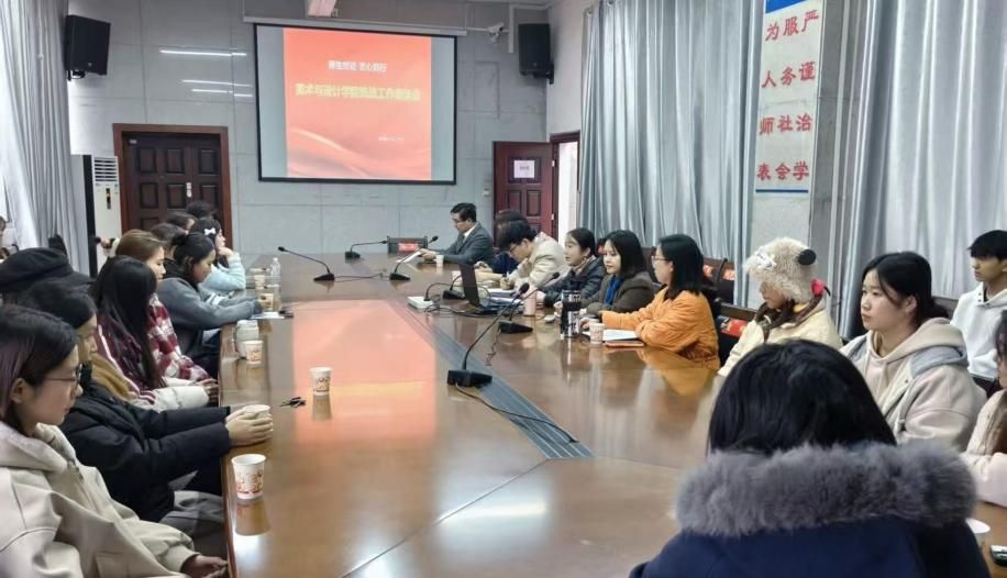 为深入贯彻落实新时代党的统一战线工作方针,加强思想政治引领,凝聚育人合力,12月11日下午,美术与设计学院“师生对话·艺心同行”主题统战工作座谈会圆满召开。学院领导、党总支委员与来自学院各民主党派、无党派人士、留学归国教师、少数民族教师代表以及各年级学生代表近40人齐聚一堂,围绕“以美育人守初心,凝心铸魂担使命”展开深入交流。座谈会由学院统战委员彭波主持。