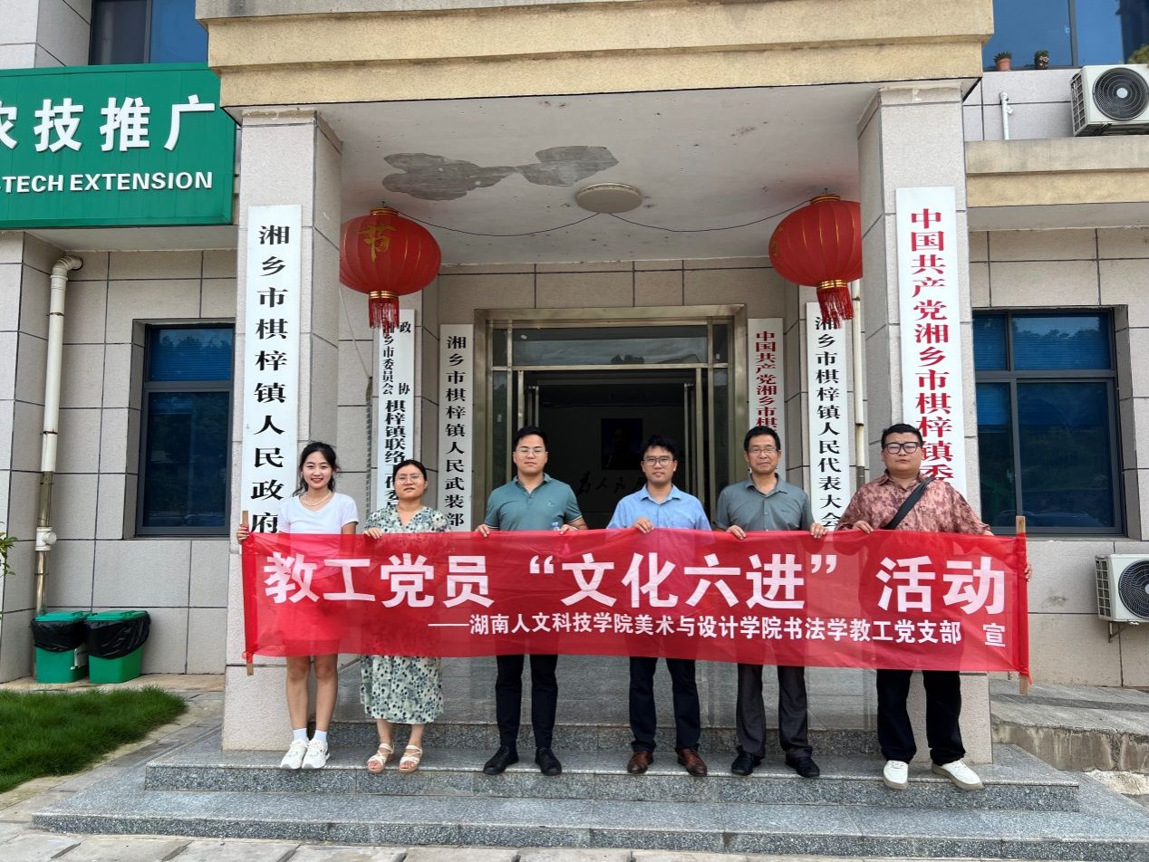 2024年6月21日,由党支部书记彭建成同志带队,ballbet贝博bb艾弗森美术与设计学院第二教工党支部教师蒋传存、李国清、袁微,以及书法学专业两名学生入党积极分子一道,驱车一百多公里分别到湘乡市虞唐镇和棋梓镇开展“文化六进” 和党纪学习教育下基层交流学习主题党日活动。
